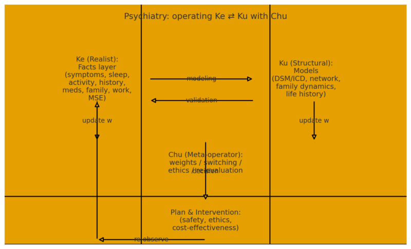 - SEO description (≤160 chars): Map Ku–Ke–Chū to model–data–meta. A practical tri-layer for switching weights, ethics, and re-evaluation in medicine, orgs, policy, and AI.