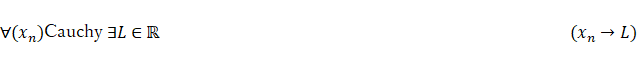しかし完備性(任意のCauchy列が収束する)は、外部から追加される公理(あるいは「定義の後付け」)になります: